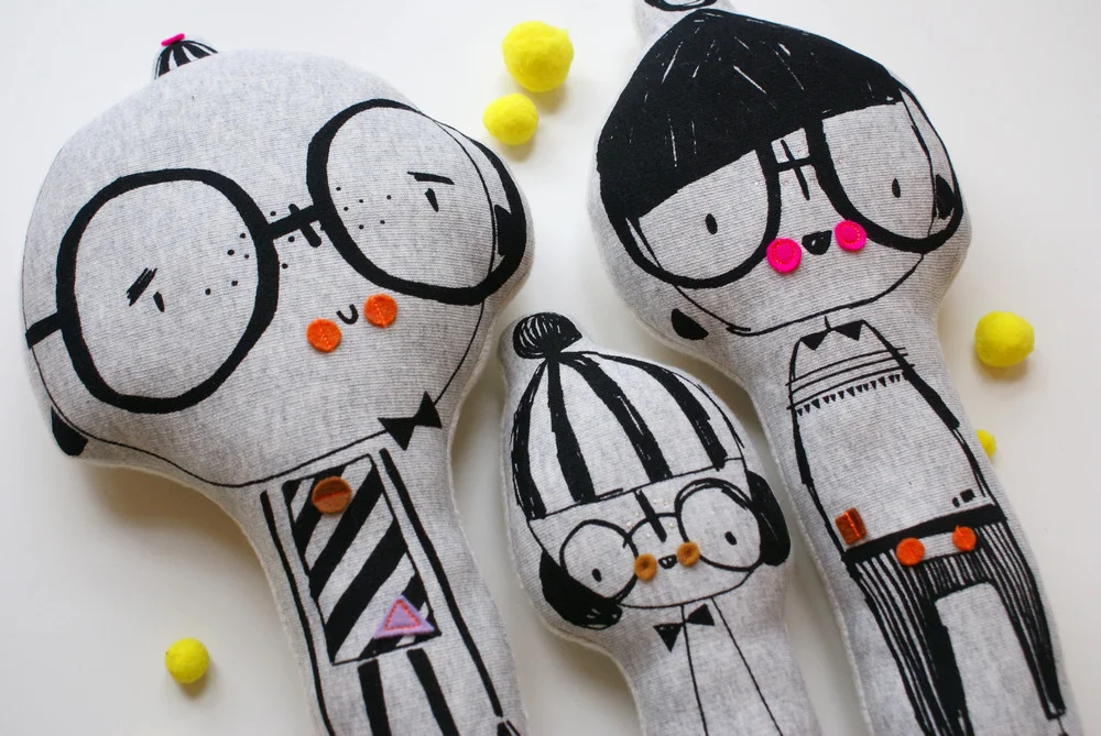 These products aren't just fun; they're crafted with care. Their posters are made from felt and hand-embroidered with detail, while their t-shirts and hoodies are screen-printed with quirky designs. The toys are handmade with funny legs, big heads, and stories to tell. Corby Tindersticks also strives to be environmentally conscious by sourcing ethically made garments.